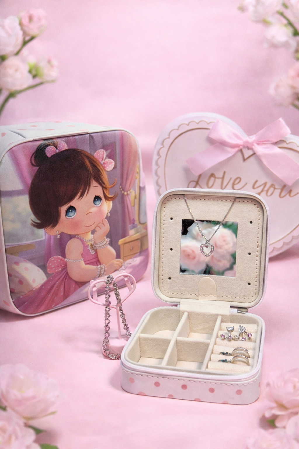 A sweet celebration of love and keepsakes, the Shimmer by Cindy x Precious Moments collaboration brings together the charming Pretty in Pink Jewelry Box with Shimmer by Cindy’s Pretty in Pink Jewelry Collection. Designed to hold both sparkle and sentiment, this pairing turns every gift into a memory meant to be treasured.
